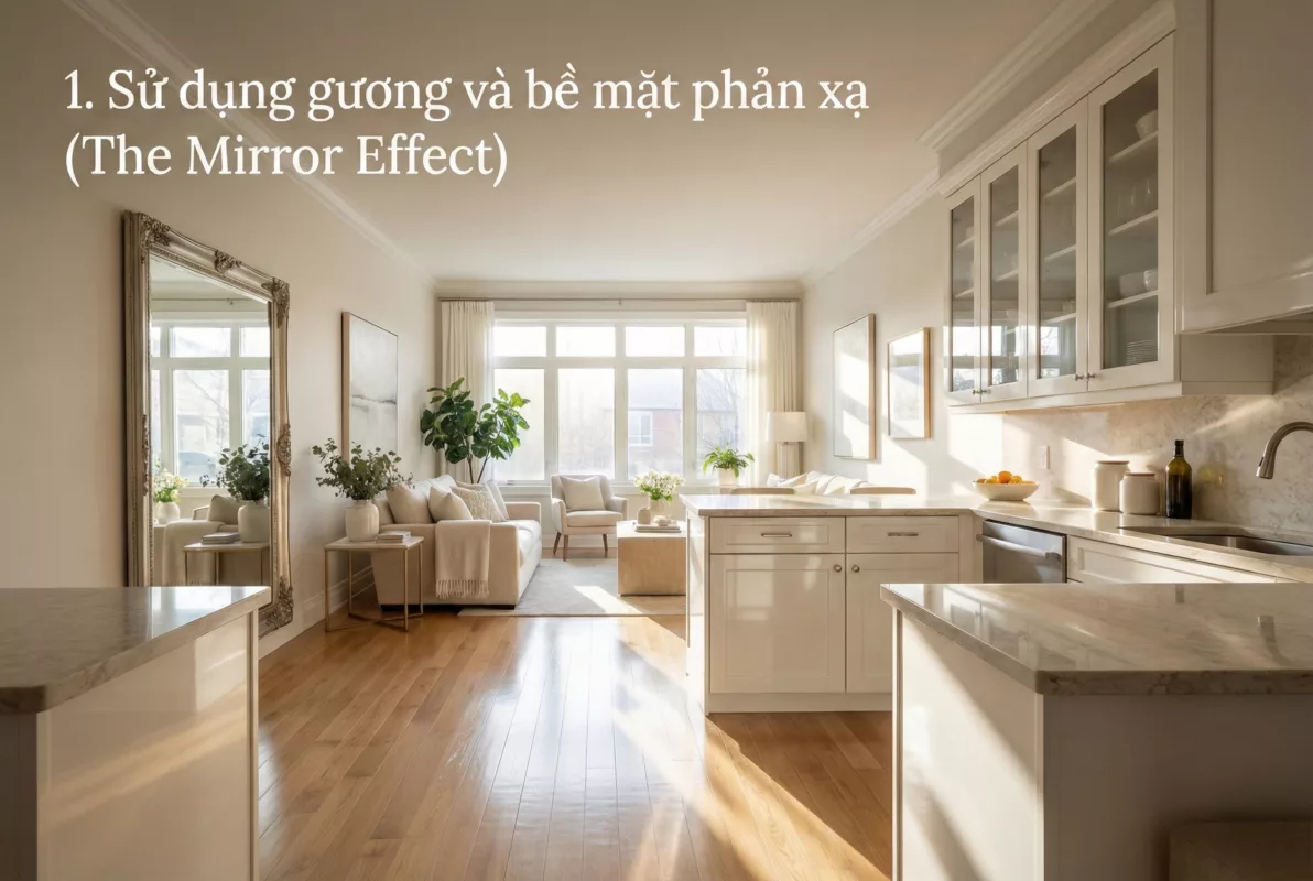 1. Sử dụng gương và bề mặt phản xạ (The Mirror Effect)